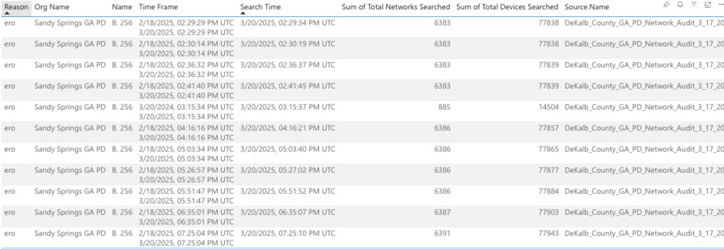 In May, ACPC reported on three metro Atlanta agencies conducting immigration-related searches. The following month, Appen Media reported the Sandy Springs Police Department had also engaged in immigration-related searches that listed “ERO” as the reason. The searches reported by Appen Media align with those conducted by APD.